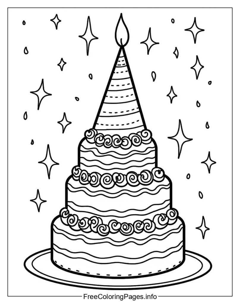 • Add birthday messages and decorations: Personalize the coloring page by adding birthday messages and decorations around the cake. Use different colors and fonts to add visual interest, creating a unique and fun design.