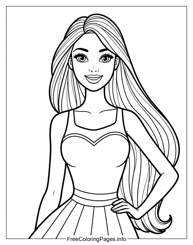 • 2. Barbies Dreamhouse: Imagine Barbie standing in front of her dreamhouse, which you can draw on the page next to her. Use bright colors to add a touch of magic to this special place.