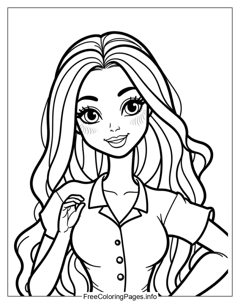 • 1. Coloring Page: Barbie Doll: This is an obvious idea, as the image already depicts a Barbie doll.