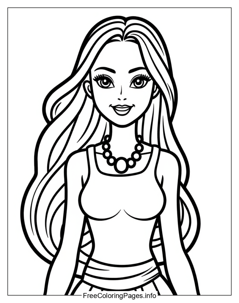 • Here are five possible ideas for a Barbie-themed coloring page: