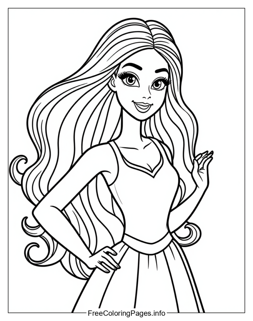 • 1. Pastel Rainbow: Use pastel-colored markers or colored pencils to create a rainbow effect on the dress, shoes, and hair of the Barbie doll.