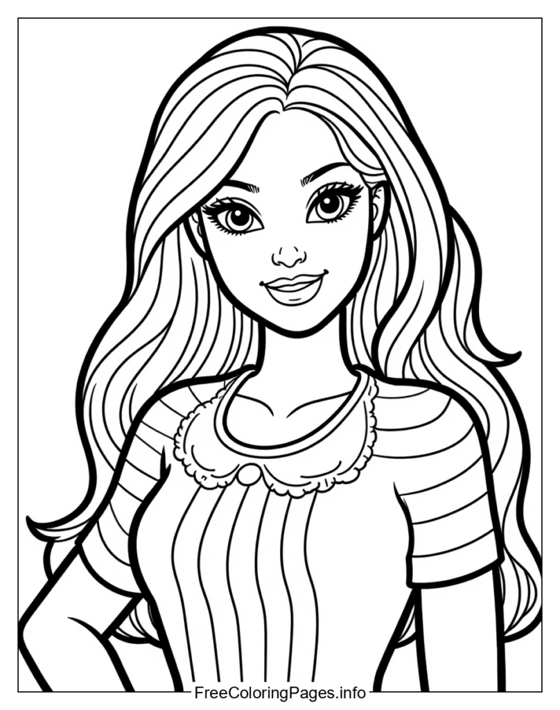 • The black and white line drawing of the Barbie image shown is an excellent way to get your children interested in art. Here are five ways that you can change her appearance: