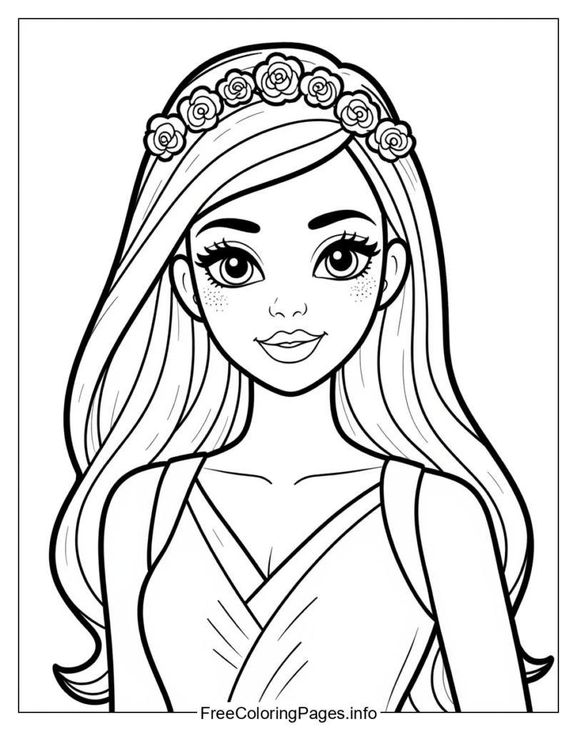 • 4. Give her dark brown hair that is parted on one side with loose waves cascading down her back.