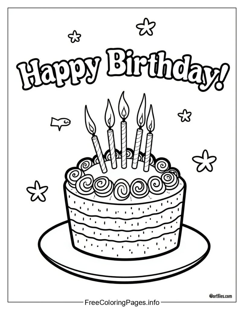 • 2. Use a rainbow palette: Use all colors of the rainbow to create a colorful design, for example, using blue for the border around the candles, red for the cherries on top, yellow for the cake base, green for the swirls on top, orange for the middle layer, and so on.
