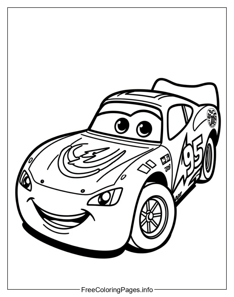 • Here are five coloring page ideas for the Cars character, Lightning McQueen: