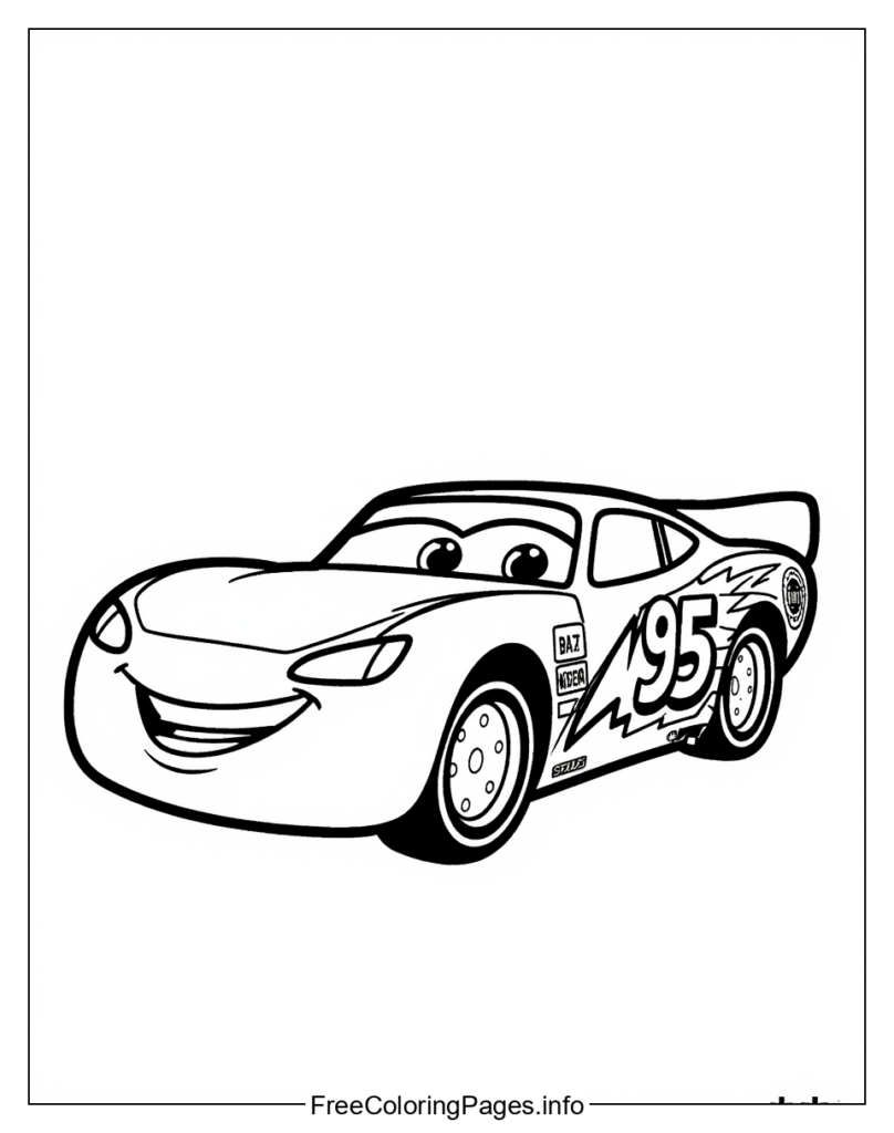 • Here are five fun and creative coloring page ideas for a Cars-themed image: