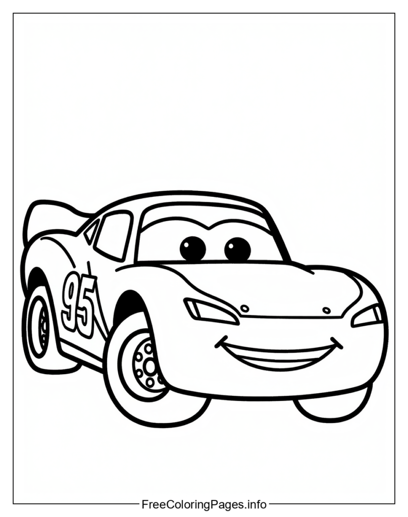 • Here are five coloring page ideas for the Cars image: