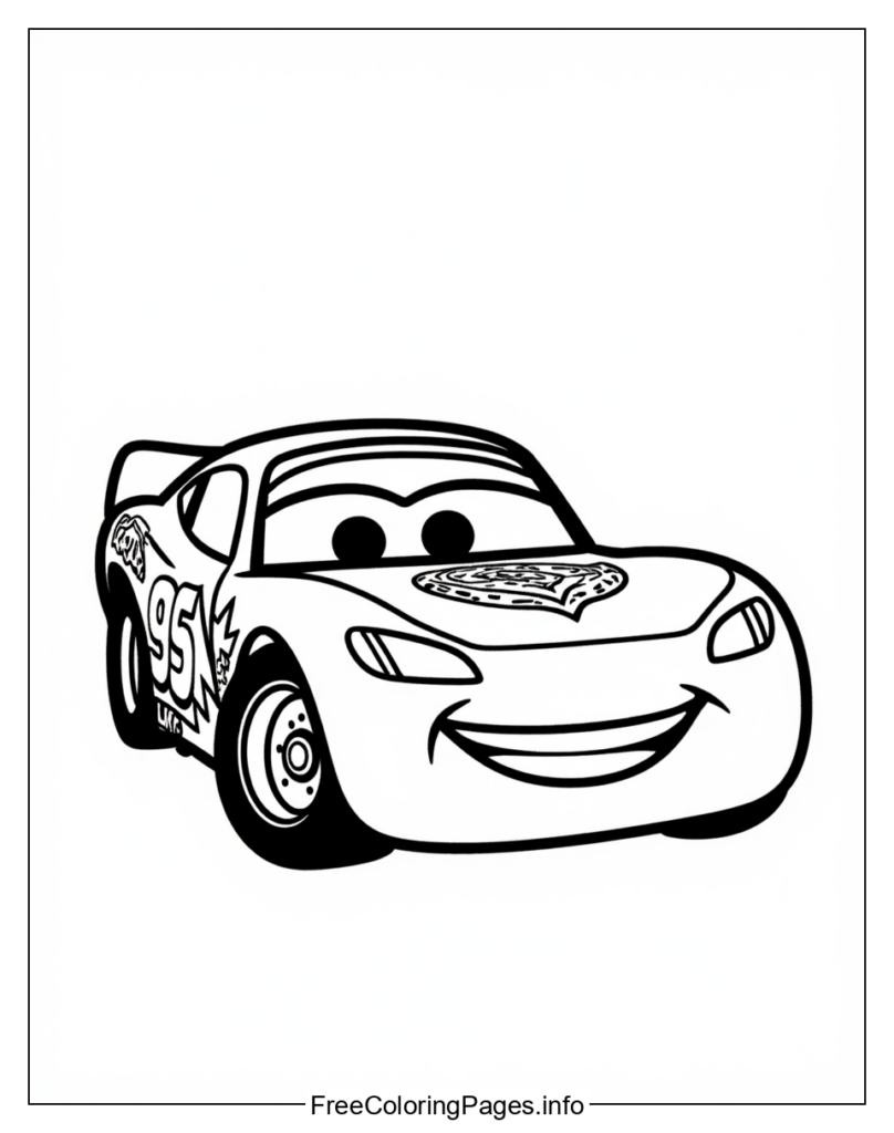 • Here are five coloring page ideas for the image of Lightning McQueen: