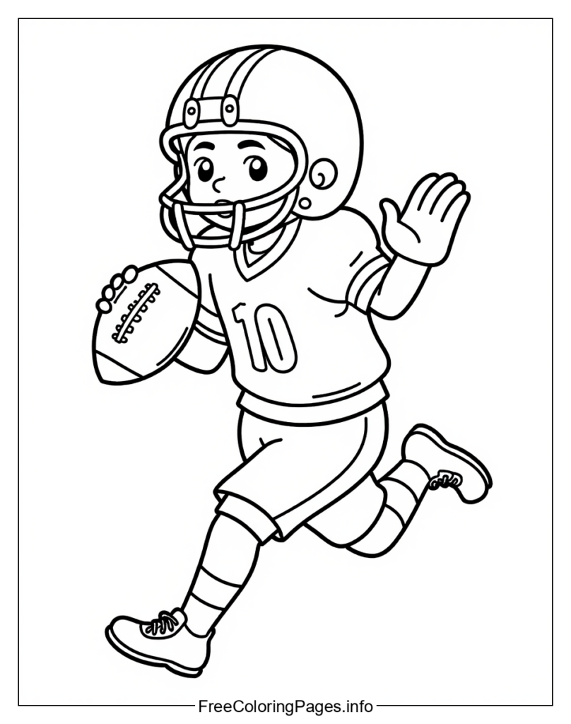 • Here are five football-themed coloring page ideas you can use to color the black and white football player: