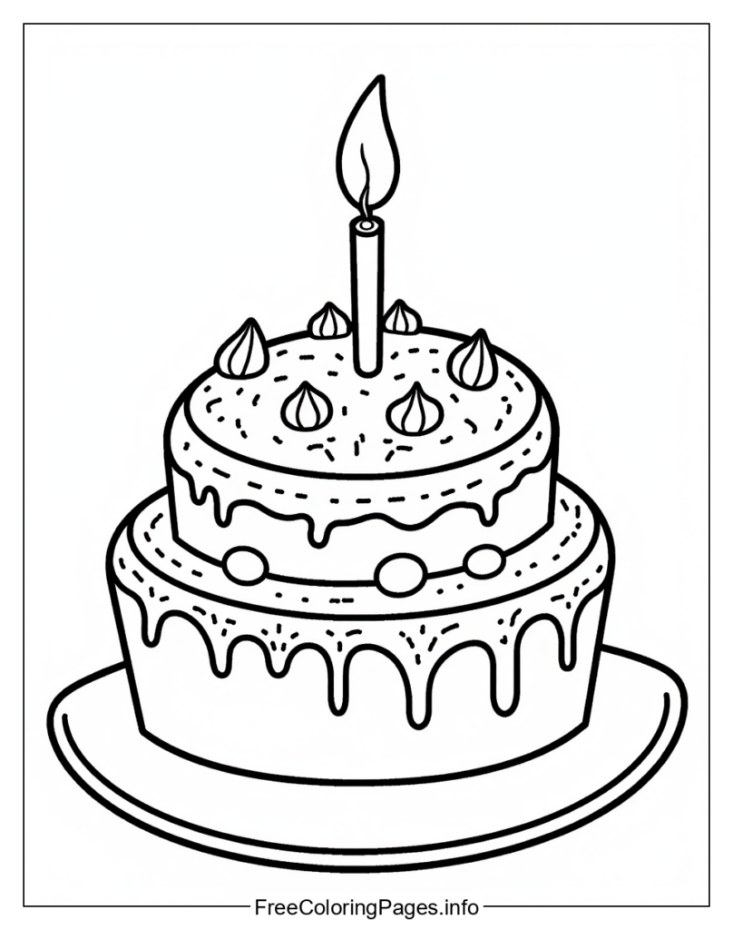 • 1. Rainbow Confetti: Color the top of the cake with a rainbow of colors, and use black or gray to draw confetti shapes around it.