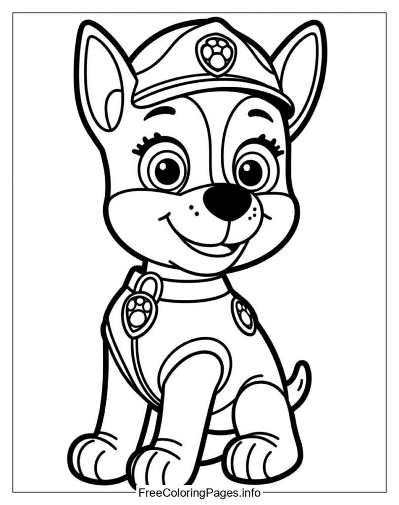 • 2. Add colors to accessories: Use markers or colored pencils to add color to Chases badge on his hat, collar, and leash.