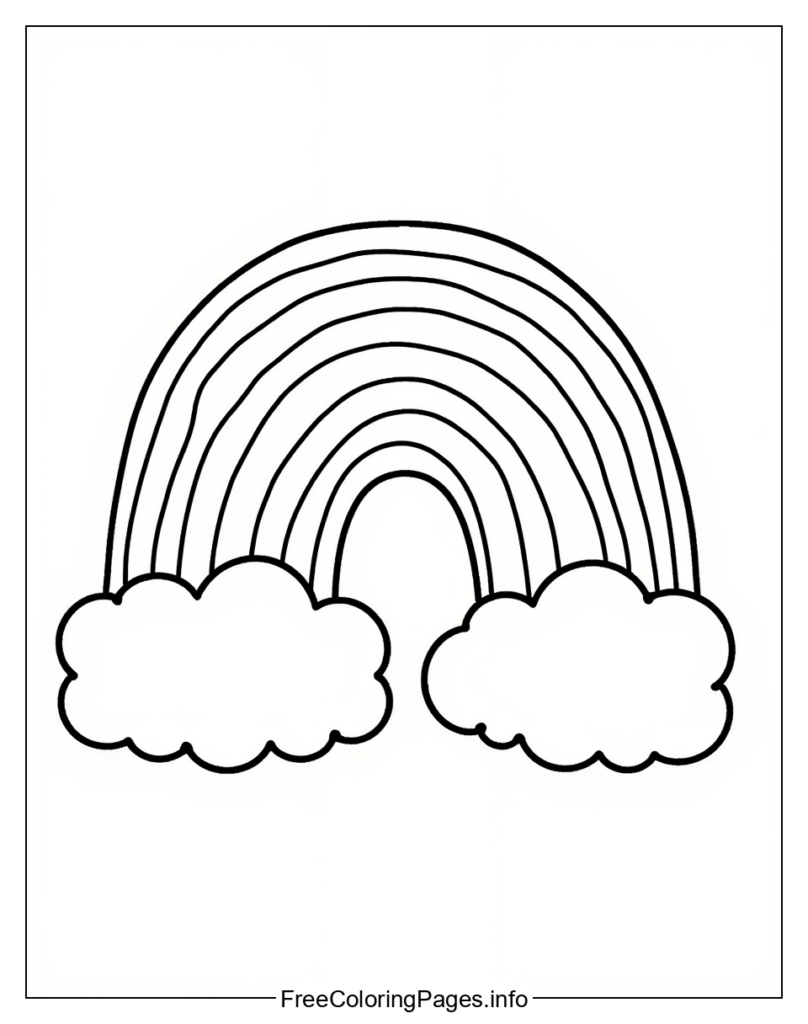 • 1. Rainbow with clouds: Color the rainbow in various colors of the rainbow and add fluffy white clouds underneath.