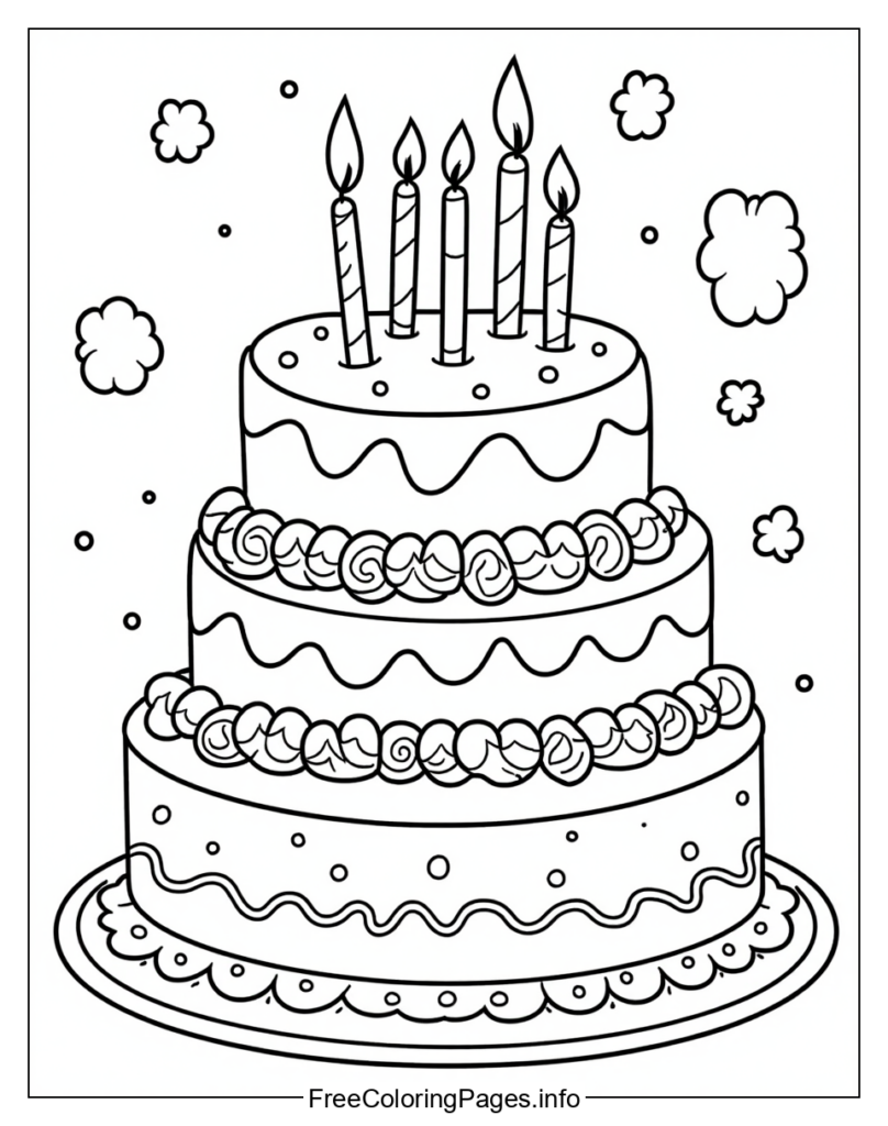 • 3. Draw and color balloons around the cake in bright colors like yellow, orange, green, blue and purple.
