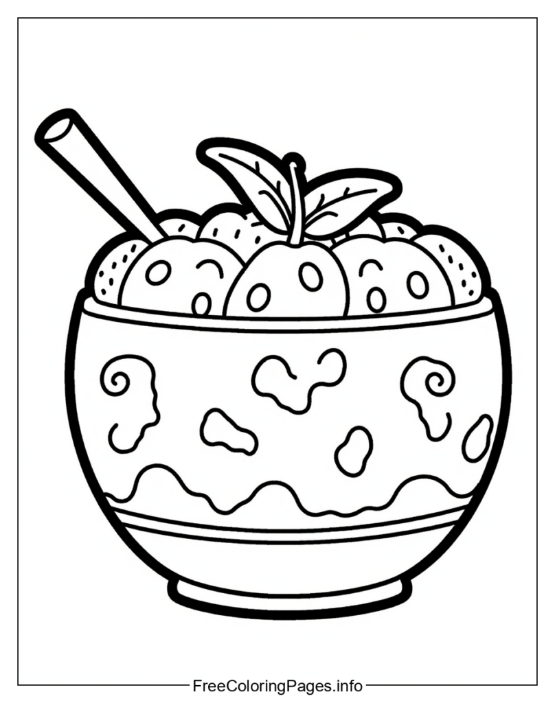 • The image depicts a bowl of fruit, which can be colored in various ways to create different visual effects. Here are five possible coloring ideas: