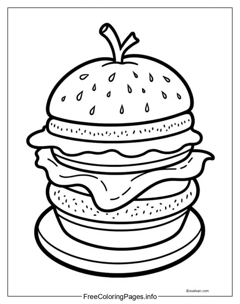 • 4. Coloring Page: Burger Contest: Create a coloring page where children can color their favorite burger in a contest setting. They could add judges, trophies, and more.