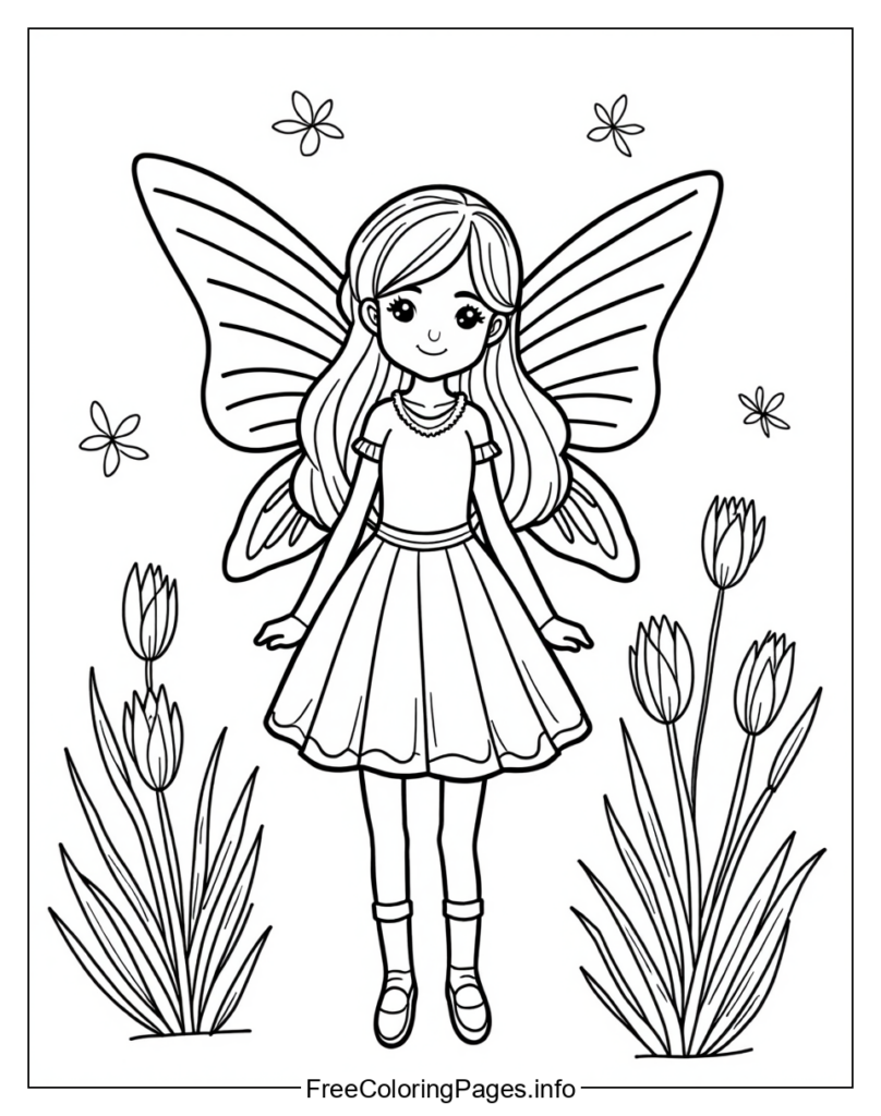 • 2. Springtime Fairy: Color the fairy using pastel shades of pink, yellow, blue, and green, reminiscent of spring flowers and blooming trees.