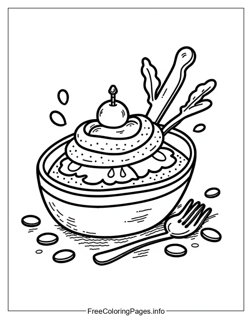 • 1. Color each element separately: You could color the toppings first, then the bowl, or you could color the entire image in one color.