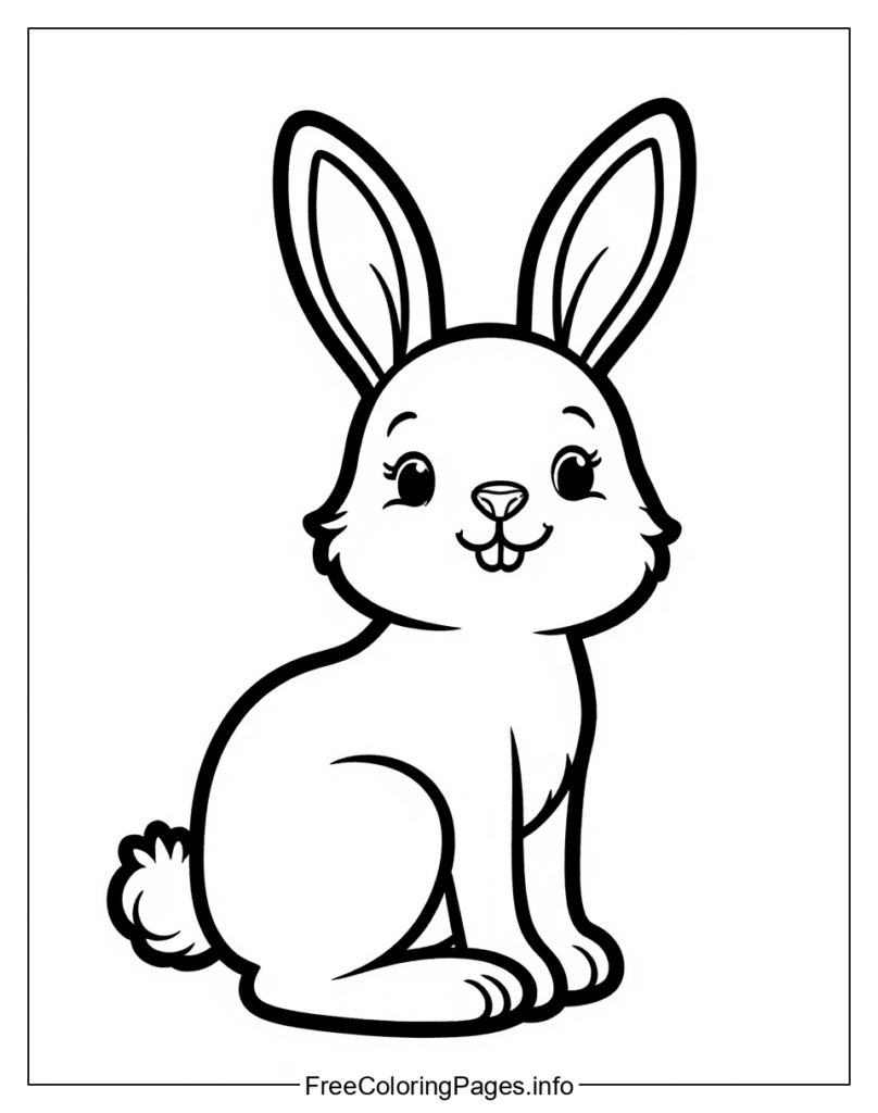 • 1. A coloring book page featuring a cute bunny rabbit, ideal for young children who love animals and want to learn about them.