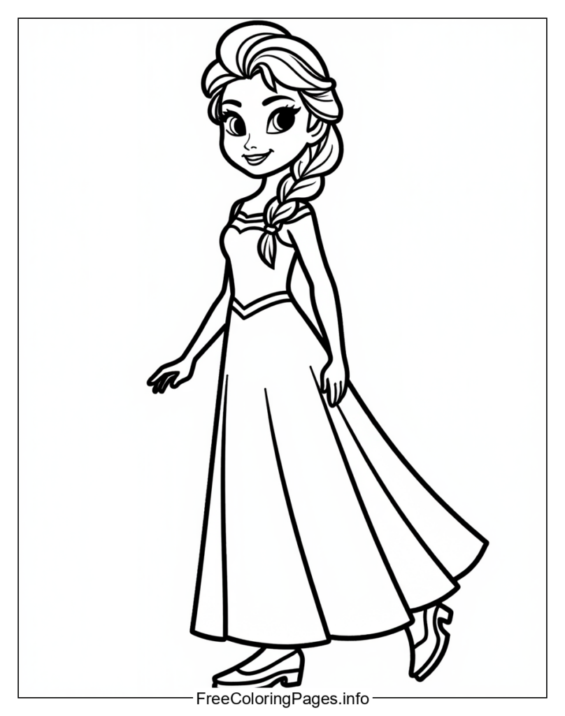 • 4. Sparkling Snow: Use shimmering colors like silver and gold to color Elsas dress, adding sparkles or glitter to give the page a magical feel.