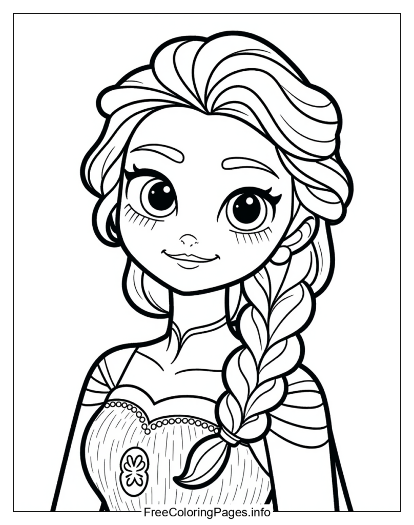 • 1. Color her dress in a vibrant, bright blue, and add some subtle shading around her eyes to create depth.