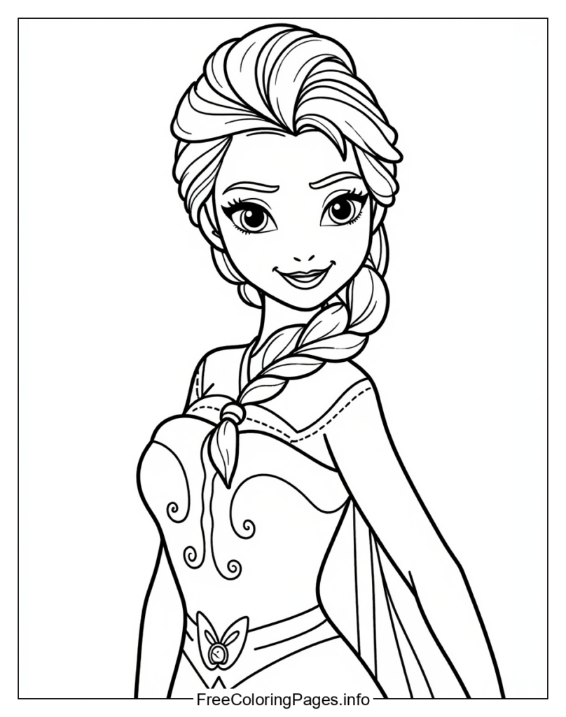 • 2. Monochromatic Winter Scene: Use varying shades of white, gray, and blue to create an icy winter scene complete with snowflakes and frost patterns in Elsas hair and dress.
