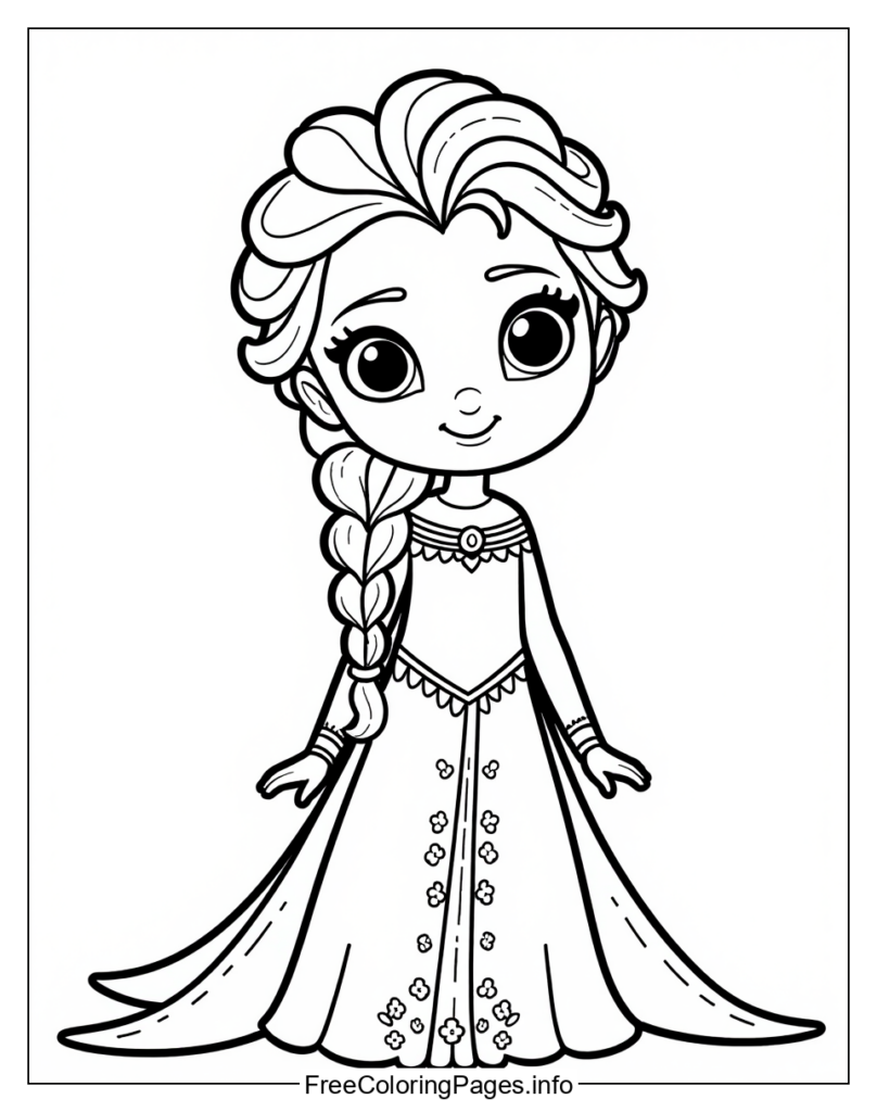 • Here are five possible coloring page ideas based on the Frozen character Elsa: