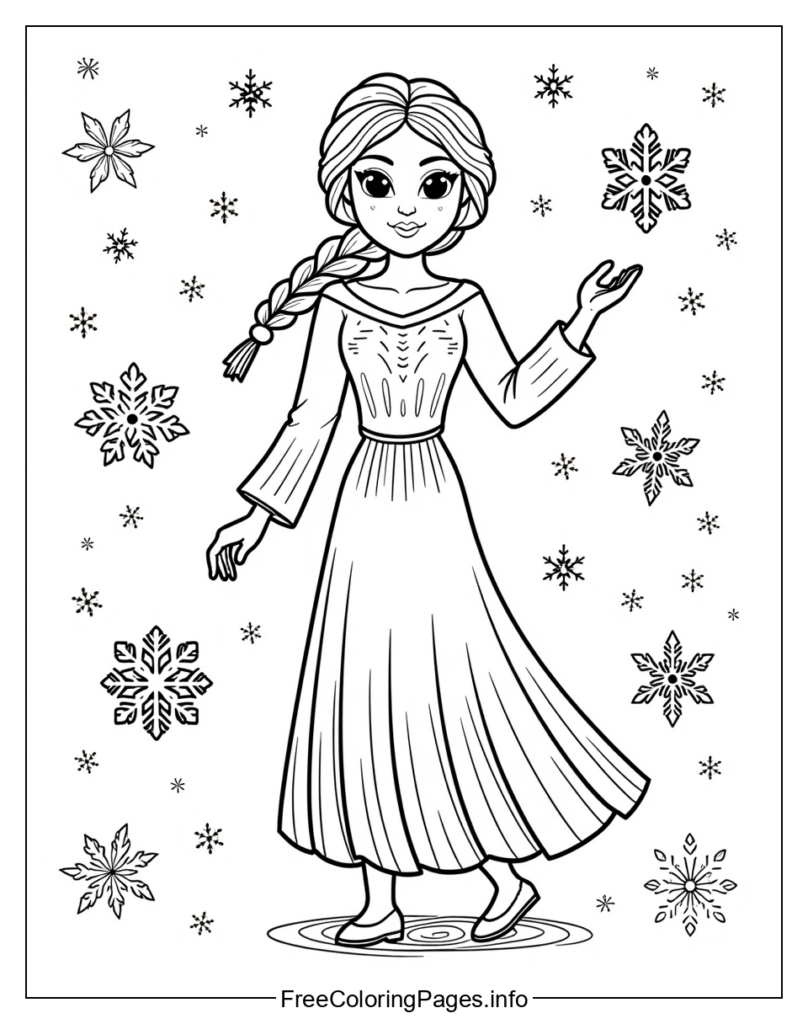 • 4. Frosty Flowers: Use light blue or pale purple for Elsas dress and add some frosty flowers around her, such as snowdrops or winter aconites, in shades of white, silver, or pale pink.