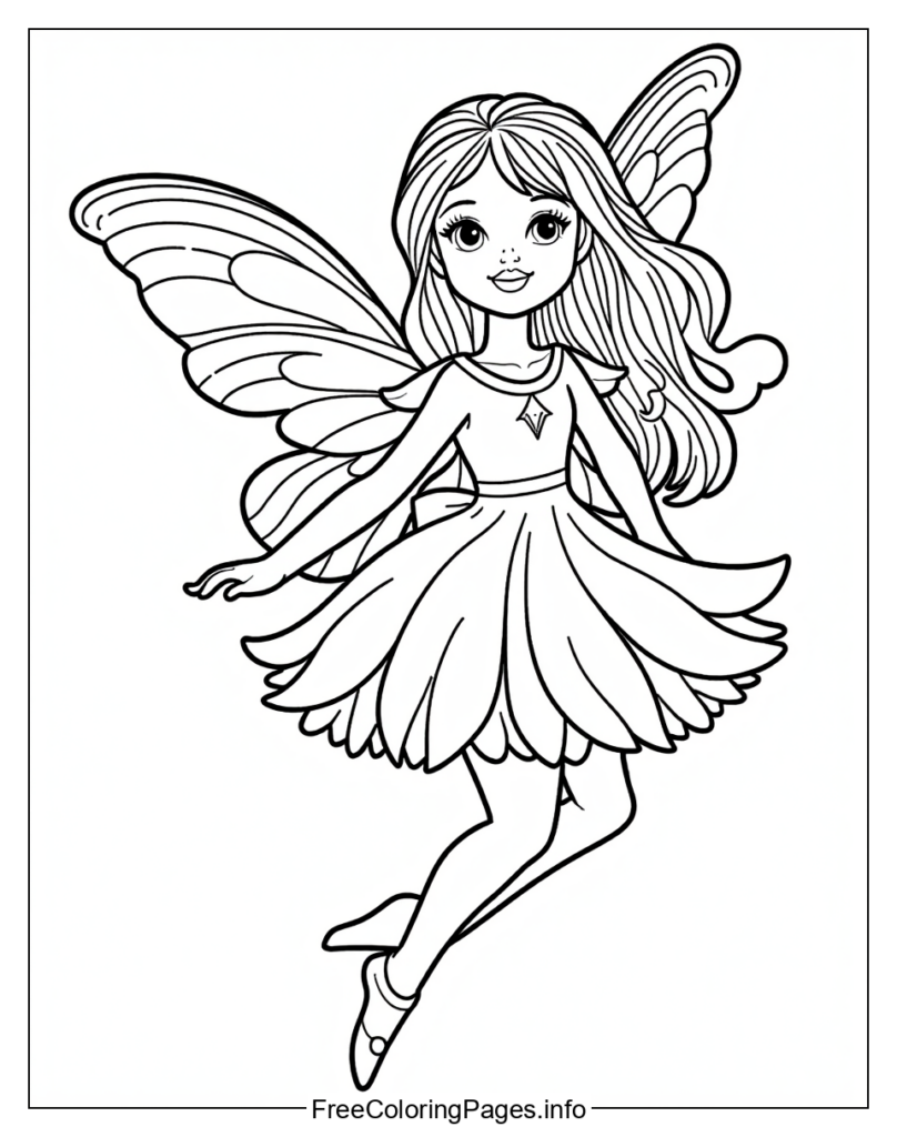 • 3. Nature Scene: Bring the outdoors in by coloring the fairy amidst lush greenery, complete with flowers, leaves, and trees.