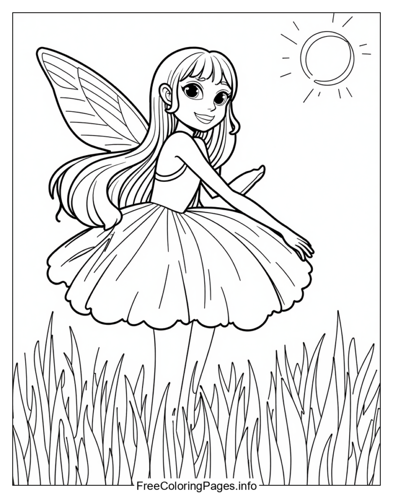 • 1. Rainbow Fairy: Color the fairys wings, hair, and dress in rainbow colors.