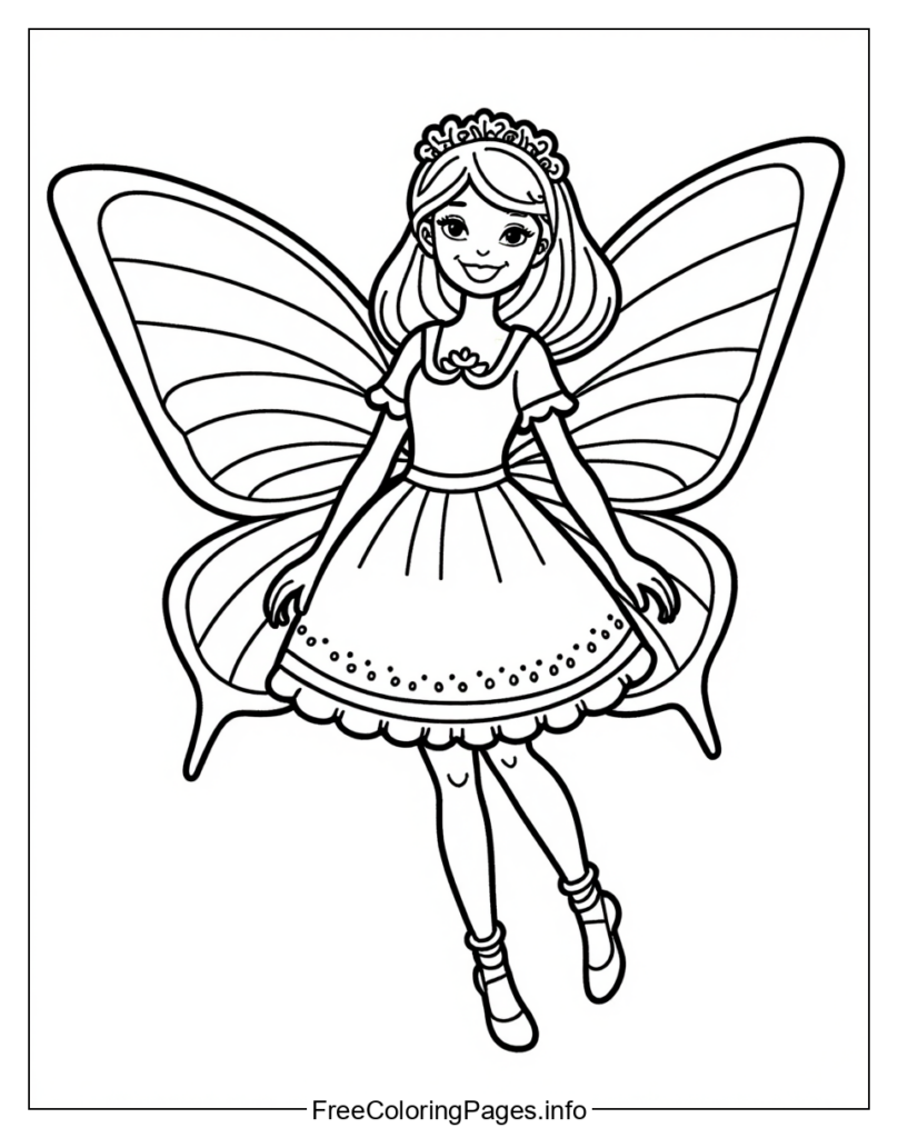 • 1. Rainbow Wings: Color the fairys wings in rainbow colors, starting from red at the top and ending with violet at the bottom.