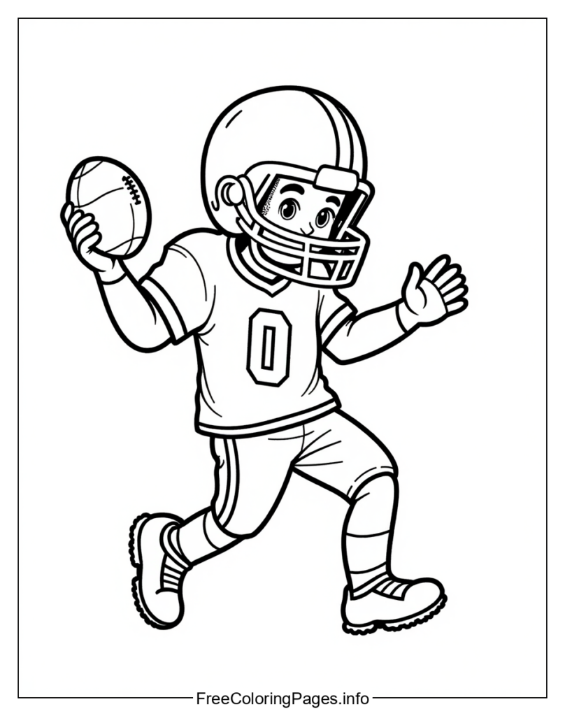 • Here are five coloring page concepts you could use to color the football player in the image: