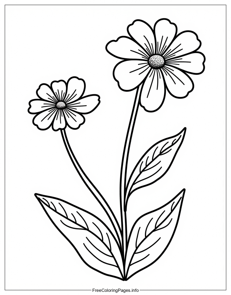 • This image of two flowers is ideal for a childs coloring book because it has simple, bold lines that are easy to color in. Here are five different ways you can color these flowers: