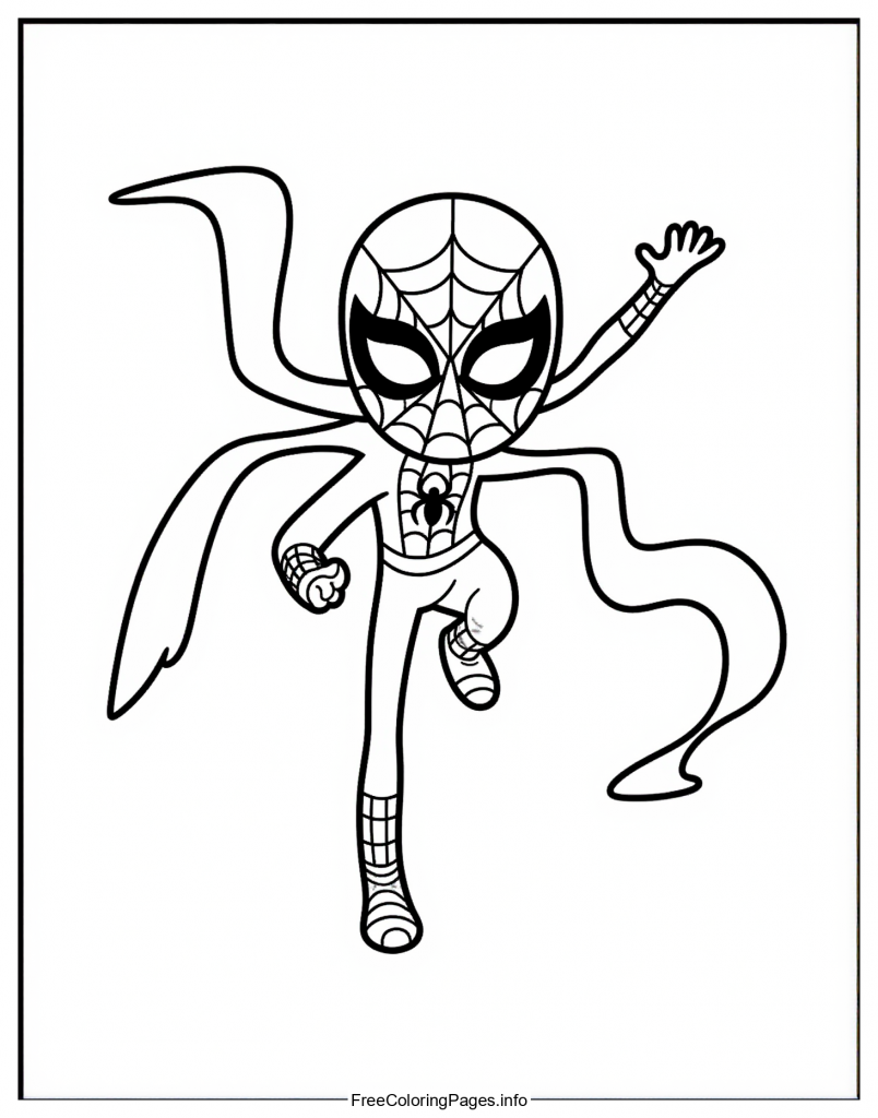 • Here are five coloring page ideas you could use for the provided Spiderman image: