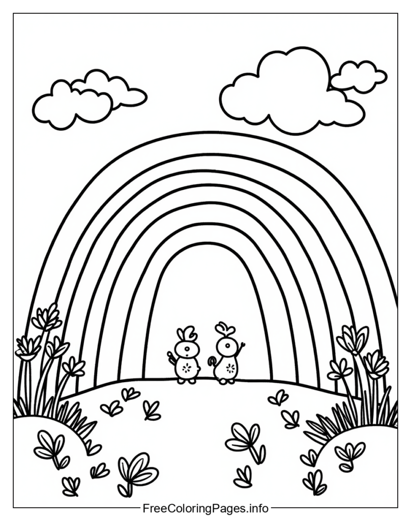 • 2. Rainbow with Clouds: Add fluffy white clouds around the rainbow for a whimsical touch.
