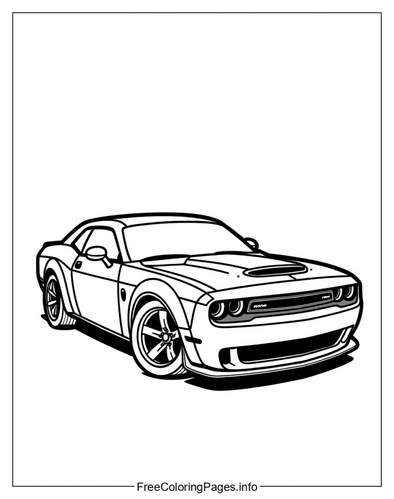 • Here are five different coloring page ideas that could be created from the provided Dodge Challenger SRT Hellcat drawing: