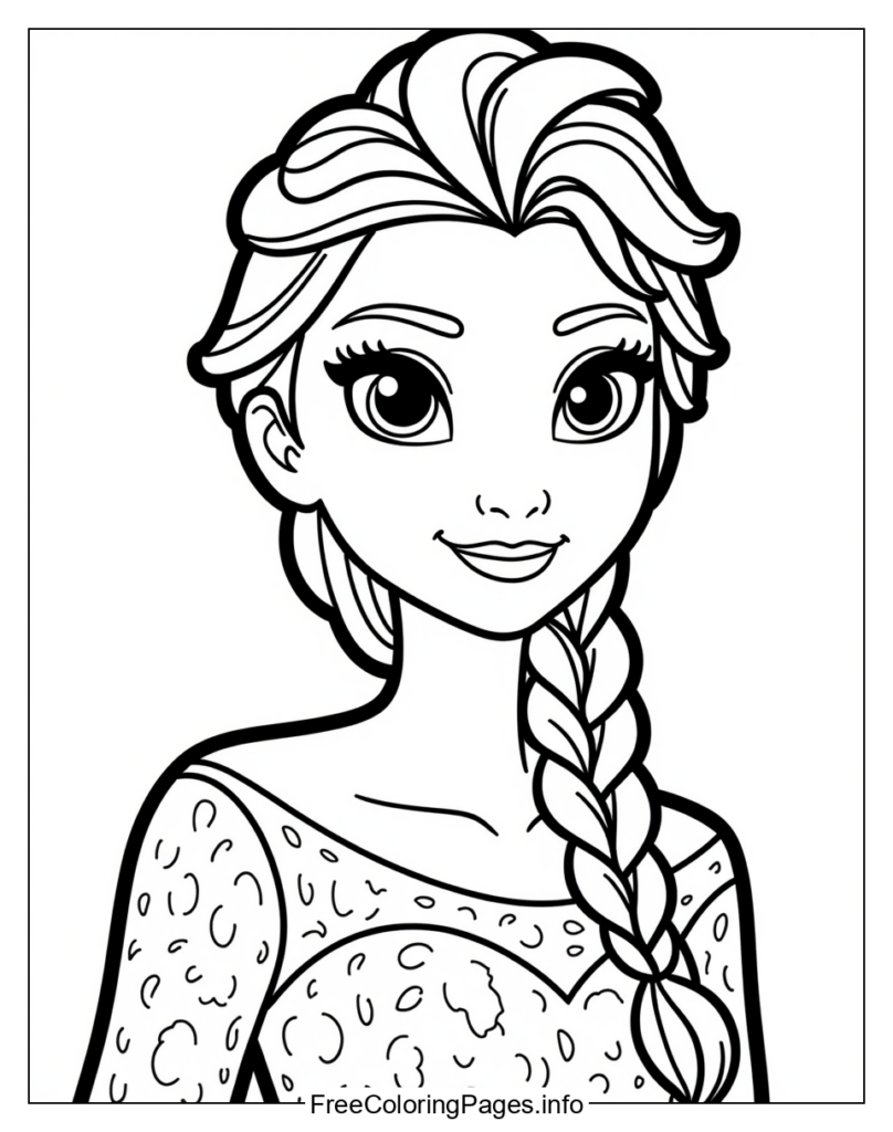 • Here are five coloring suggestions based on the outline of Elsa in the picture: