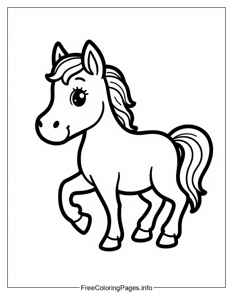 • Here are five coloring options for a coloring page of a cartoon horse: