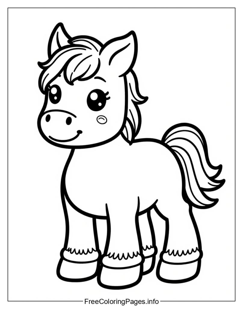 • 2. Pastel Colors: Color the horse in pastel shades, using soft pink for the muzzle, purple for the ears, mint green for the body, lavender for the legs, peach for the tail, light gray for the eyes, yellow-green for the nose, and powder blue for the mane.