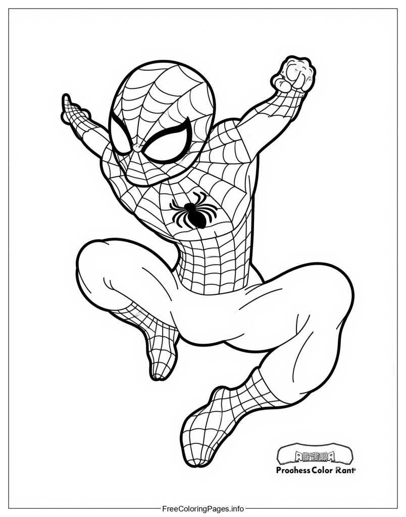• Sure, here are five possible coloring page ideas to create using the Spider-Man image provided: