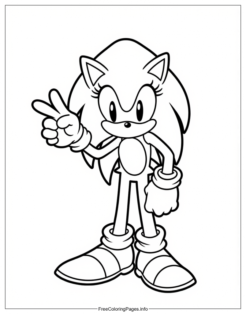 • The image is a line drawing of female cartoon character, likely from the Sonic universe. She has long hair and wears a short dress or tunic.