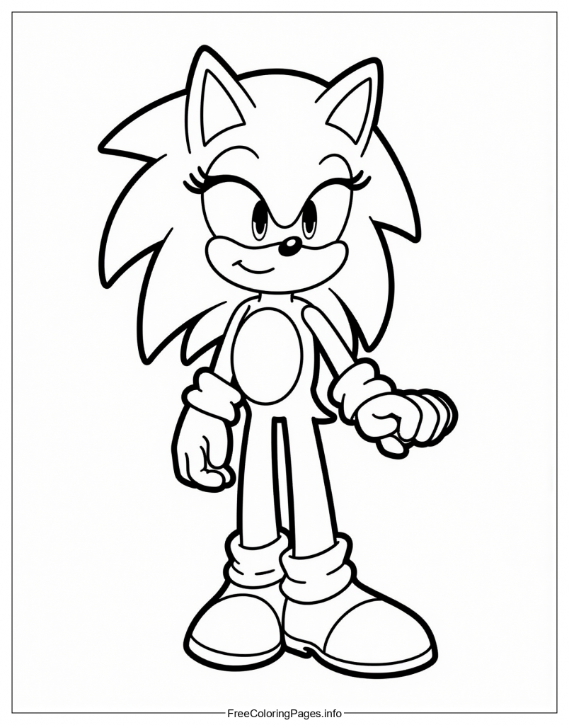 • This black-and-white outline of Amy Rose from the popular video game series Sonic the Hedgehog is an excellent subject for a coloring session.