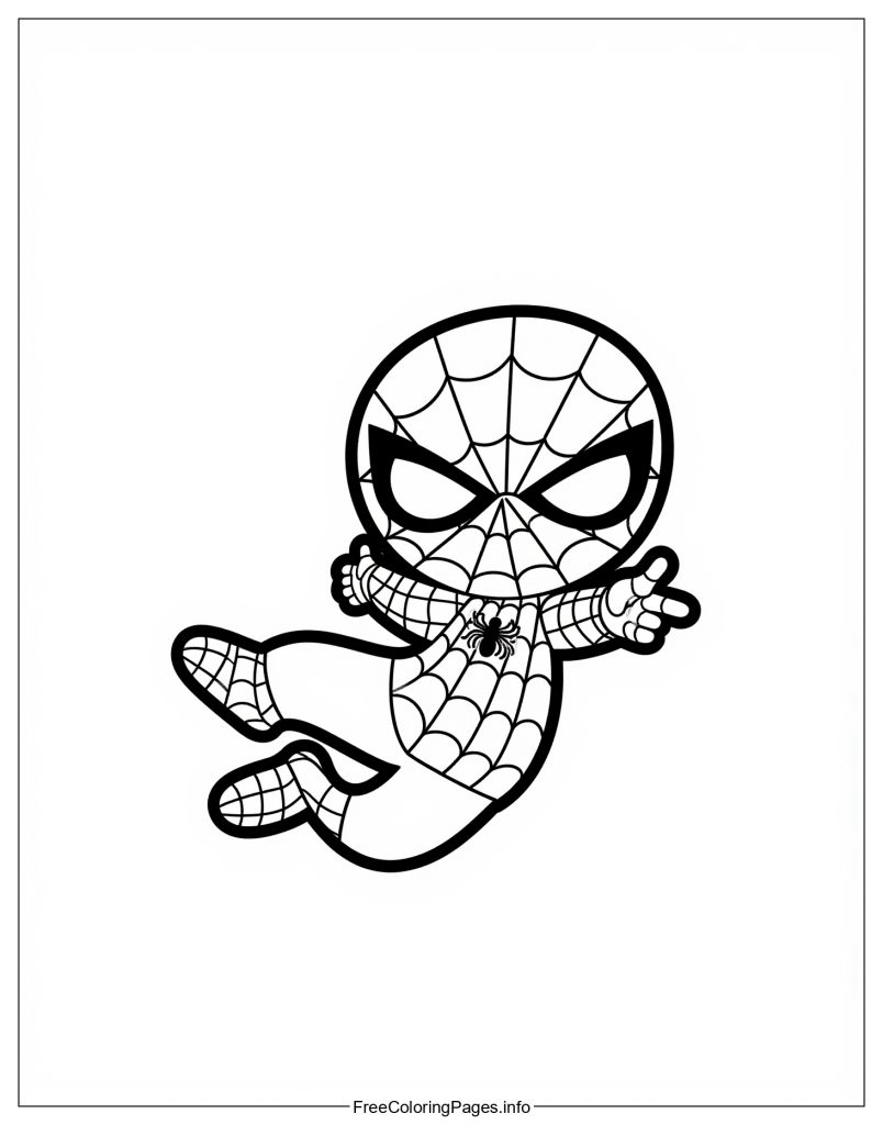 • 1. Color by character: Color each section of the picture a different color, such as red for his mask, blue for his suit, and yellow for his web shooters.