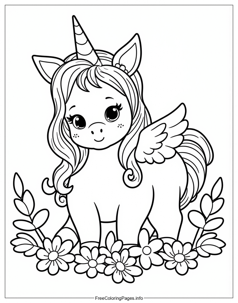 • 2. Pastel Unicorn: Use soft, pastel colors to color the unicorn and flowers.