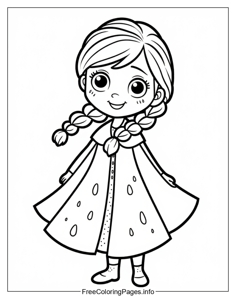 • This image is not of Frozen but rather a generic little girl in a dress. Here are five different coloring ideas: