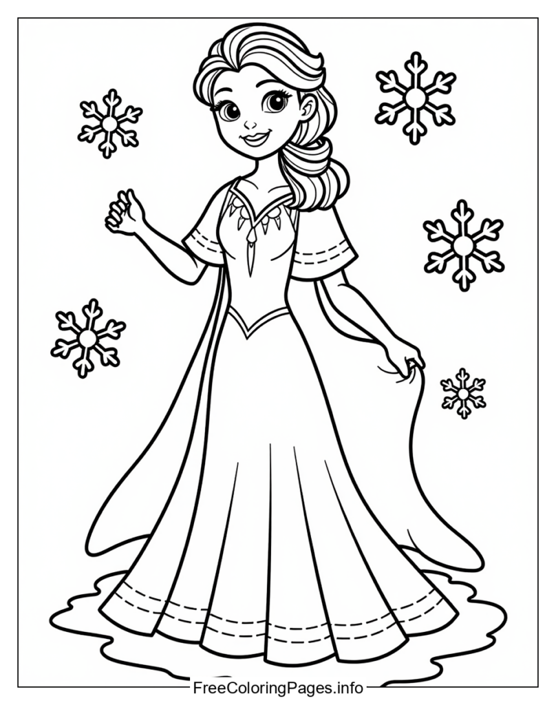 • 2. Use sparkly markers or glitter pens to add some sparkle to Elsas crown, dress, and accessories.
