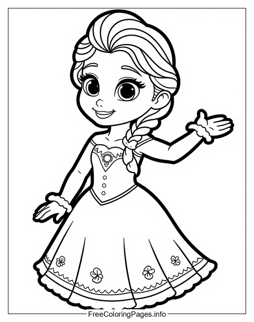 • 2. Winter Wonderland: Create a winter wonderland effect by coloring Princess Annas dress and cloak in shades of white, light blue, and pale pink, evoking the feeling of snowflakes gently falling on her royal attire.