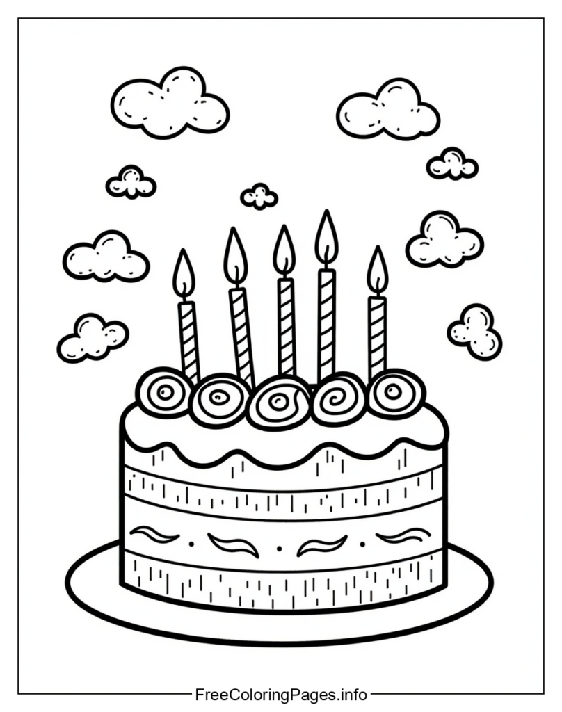 • 1. Color the birthday cake pink and decorate it with rainbow-colored candles.