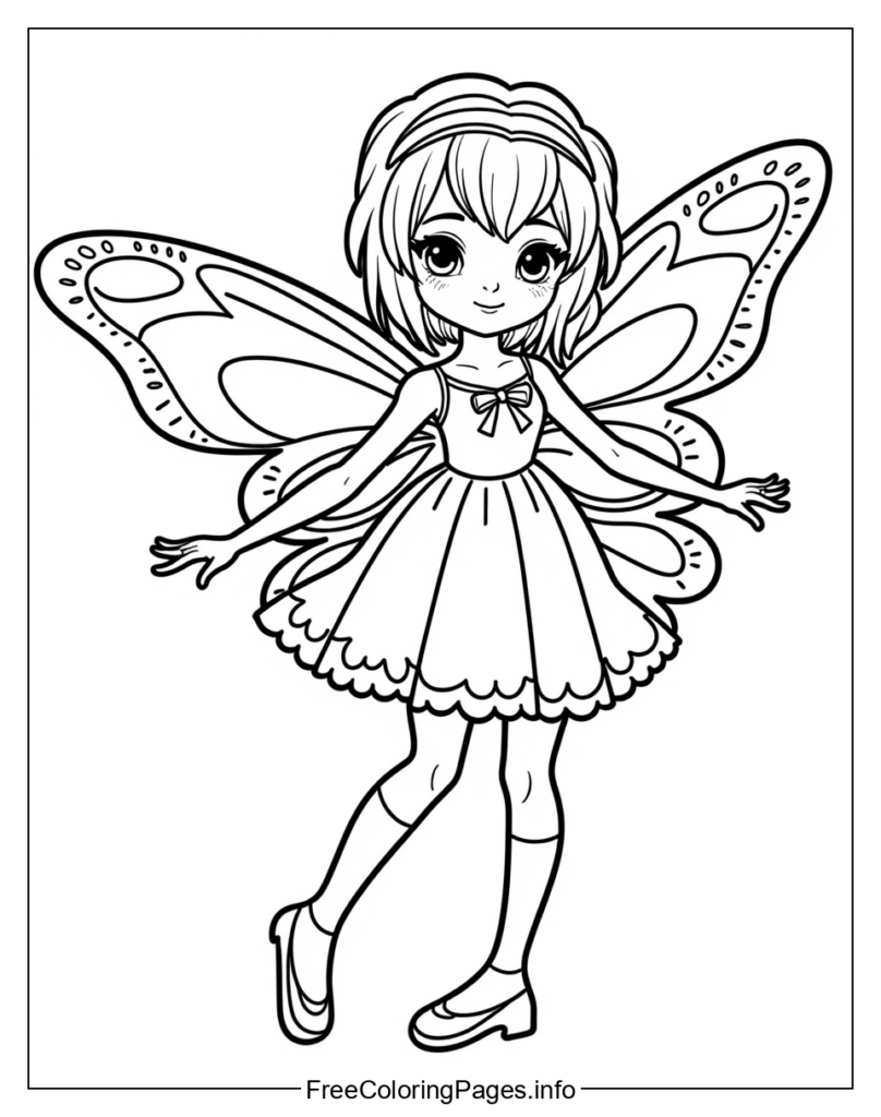 • This fairy coloring page could be colored in a variety of different ways, but here are five possible options: