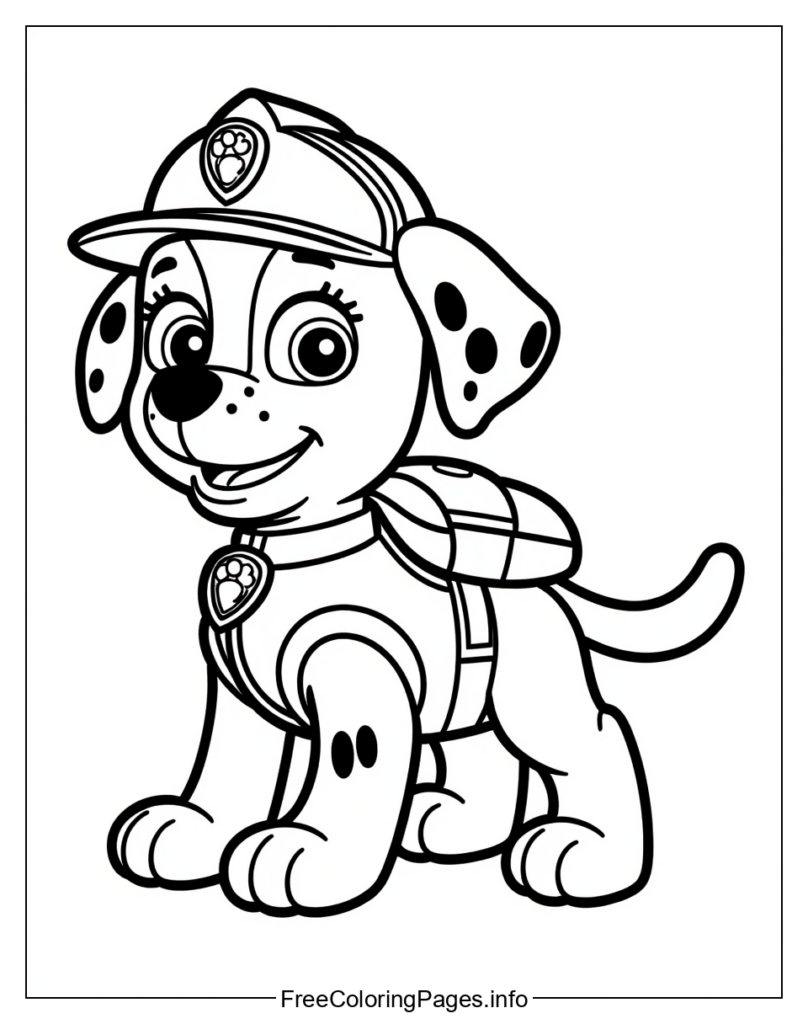 • Here are five coloring page ideas for a Paw Patrol image of Marshall the fire pup: