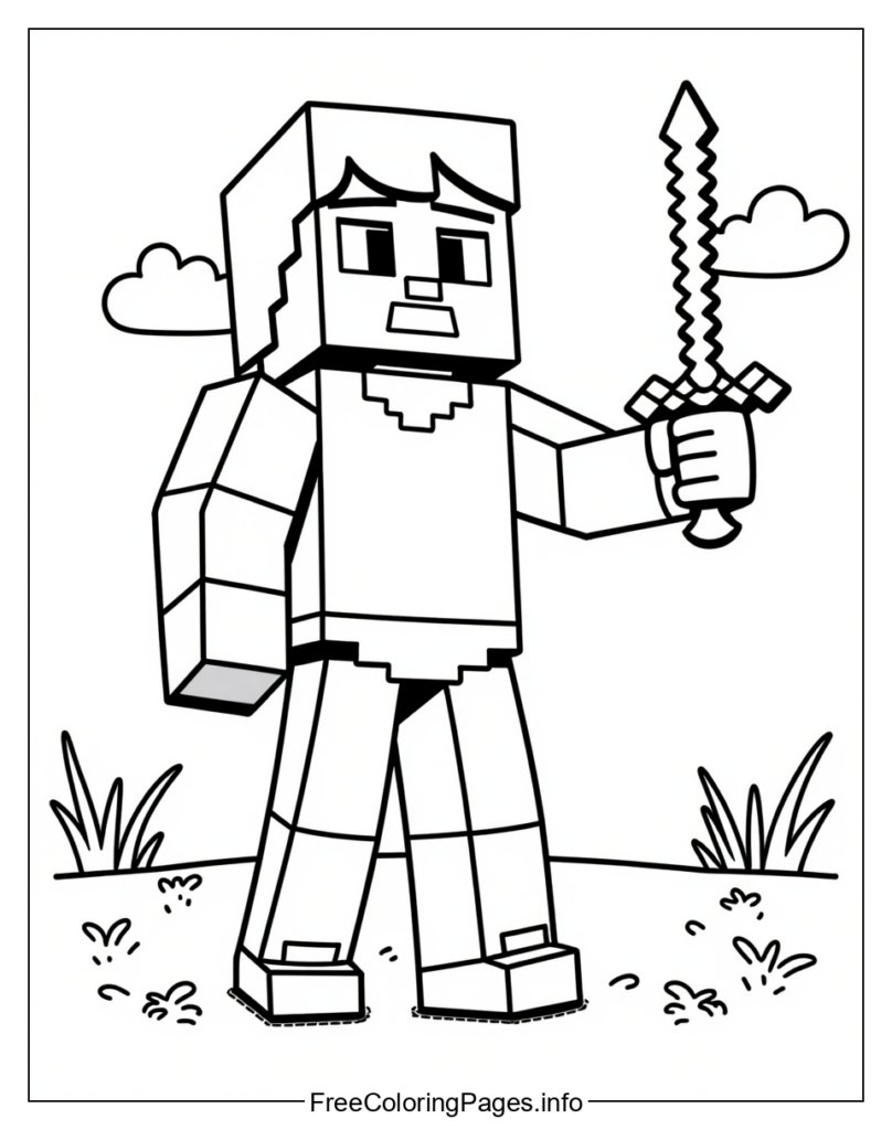 Minecraft Coloring Page – A Blocky Knight Prepares for Battle
